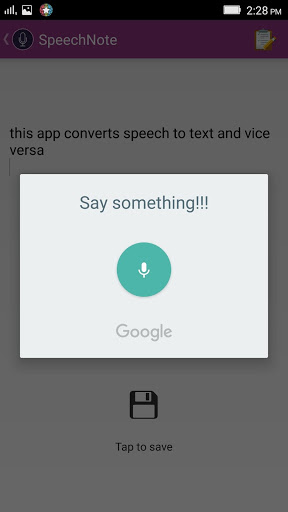 Itu dibuat untuk semua, aplikasi universal yang dapat melayani kepada orang-orang dari semua kelompok umur.Mengkonversi dikte ke dalam teks dan bahkan dapat membaca teks ke dalam bentuk audio. Ini dapat memudahkan pekerjaan siswa, pebisnis, profesional.Ini memberikan pekerjaan cerdas atas kerja keras.
