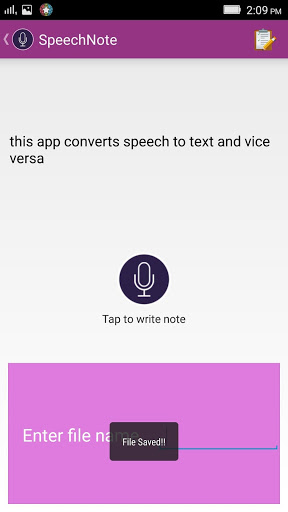 Catatan Pidato adalah kombinasi untuk mengubah ucapan atau audio ke dalam format teks dan juga teks ke dalam pidato atau mengatakan catatan suara.Aplikasi ini telah dibuat dengan tujuan untuk memberikan bantuan kepada mereka yang ingin memudahkan pekerjaan penulisan.Ini adalah aplikasi yang fantastis untuk menghemat waktu Anda.