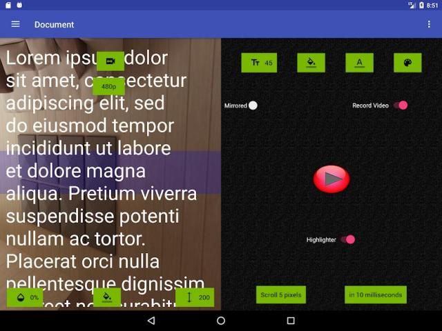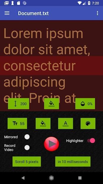 - Increase or decrease Teleprompter's scrolling speed via remote or from within the app