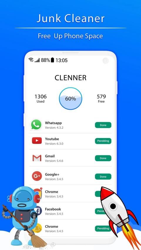 - semua yang Anda perlukan untuk membuat ponsel Anda berfungsi sebaik yang Anda inginkan. Pembersih Telepon akan membebaskan ruang pada ponsel Anda sehingga Anda akan mendapatkan memori tambahan yang dapat Anda gunakan. Ram Cleaner - Ram Cleaner Untuk Android akan meningkatkan RAM sehingga ponsel Anda akan bekerja sangat cepat sehingga Anda tidak akan percaya.