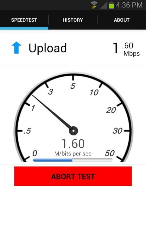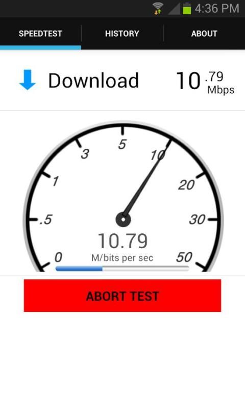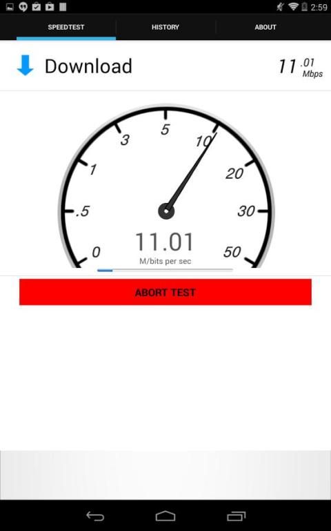 - Sederhana, satu tombol tap melakukan (atau membatalkan) tes kecepatan internet.