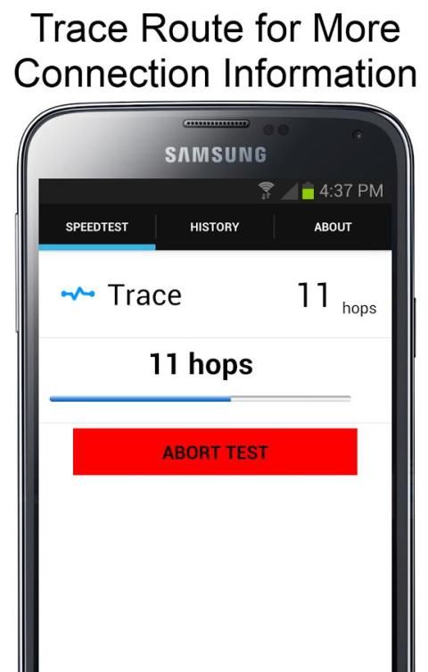 Catatan penting: Kecepatan tes menggunakan ICMP untuk menjalankan ping dan trace route. Ada beberapa perangkat dan membangun dari Android di mana hal ini telah sengaja diblokir. Sayangnya, tidak ada yang kita sebagai pengembang dapat Anda lakukan untuk menghindari hal ini terjadi. Jika perangkat Anda terpengaruh, Kecepatan tes tidak akan berjalan ping atau trace route. Ini hanya akan melompat dan meninggalkan bidang kosong untuk hasil. Mudah-mudahan, di masa depan, akan ada bekerja di sekitar.