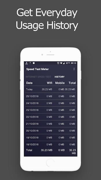 SpeedTest Lite: Internet Speed Meter displays your internet speed in status bar and shows the amount of data used in notification pane. This helps you to monitor network connection anytime while using your device.