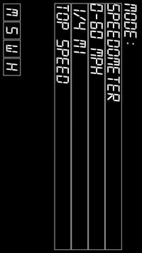 0-60 mph (0-100 km/h) – measure car performance from 0 to 60 mph, displays time needed to reach 60 mph and distance required. Mode starts automatically when movement is detected. R resets the values.