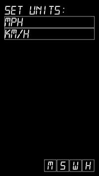 S = settings – select between metric system (km/h) and American/Imperial system (mph)
