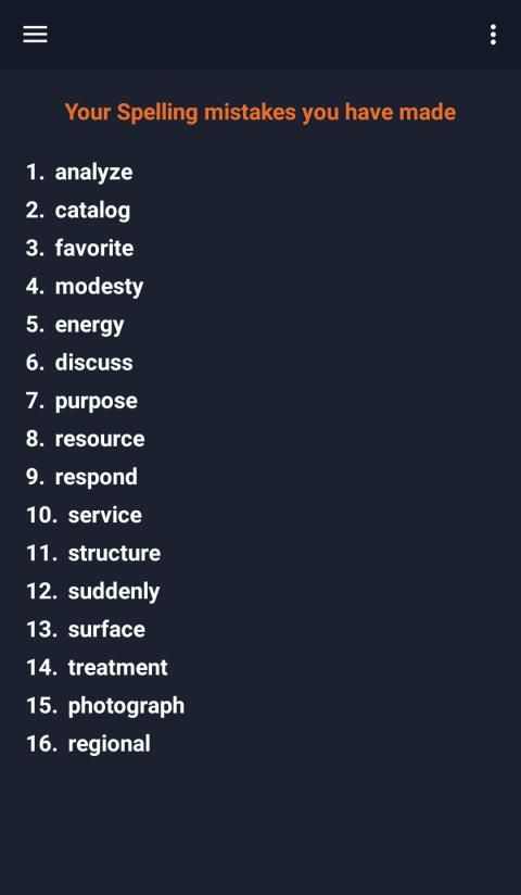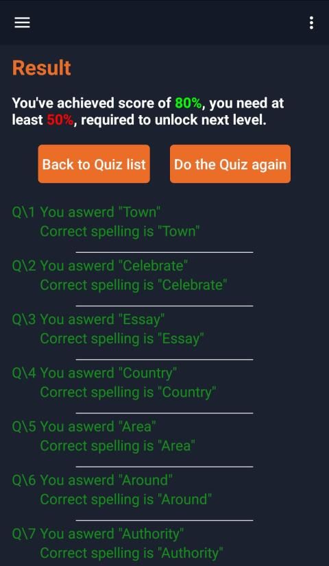 * Anda dapat mengambil kuis pada kata-kata yang Anda terus salah eja secara terpisah.