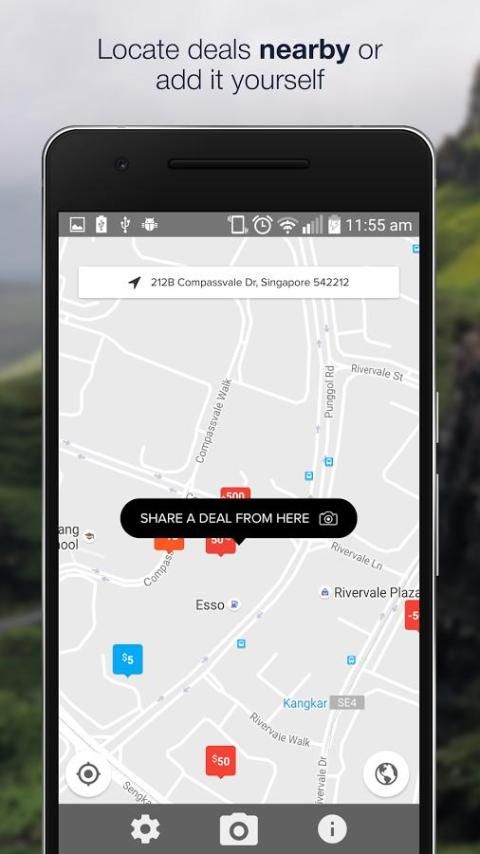 1. Pengguna hanya akan tekan lokasi mereka di peta, snap foto tawar-menawar mereka menemukan dan pasca.