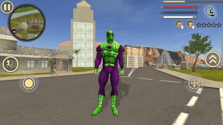 Anda memiliki kekuatan nyata khusus. Anda dapat menembak sinar laser berbahaya dari mata Anda. Anda dapat menembak tali ke bangunan dan memanjat bangunan ke atas. Kakimu juga sangat kuat. Jangan meremehkan mereka. Jangan macam-macam dengan polisi, mereka yang baik. Gaya kota ini mirip dengan Miami atau Las Vegas tetapi sebenarnya itu adalah New York.