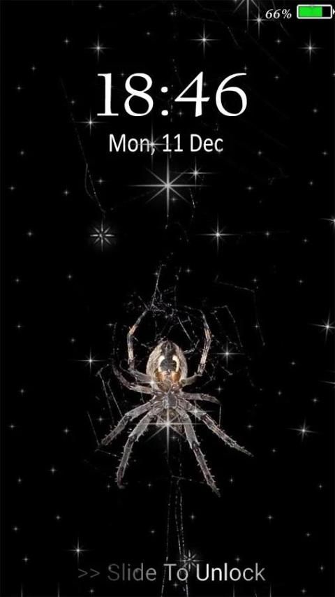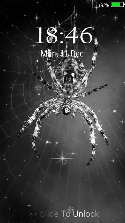 Install New gratis Spider wallpaper hidup ---> Tekan ikon ---> pilih Spider hidup wallpaper favorit Anda dan memungkinkan Spider hidup wallpaper layar kunci dengan kode PIN.