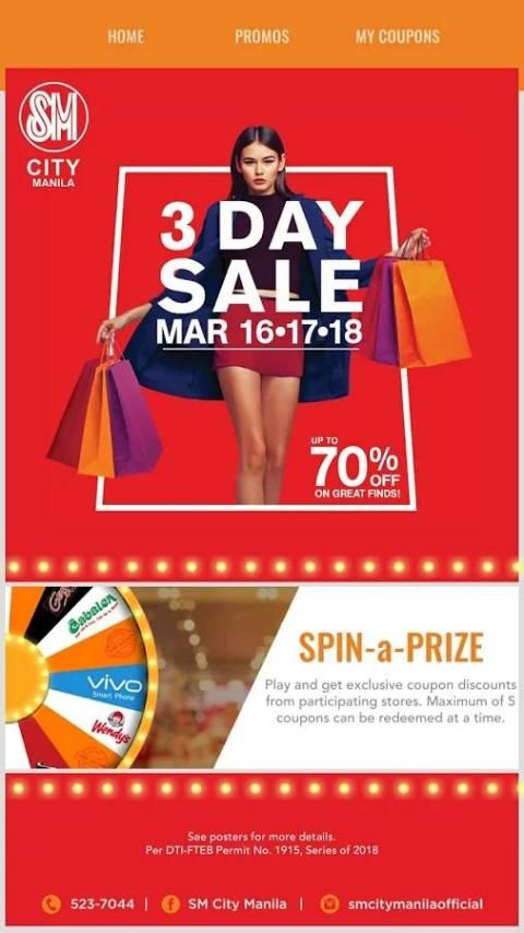 Bermain & diskon eksklusif kupon Win dan memperlakukan di Sale 3 Hari SM City Manila!