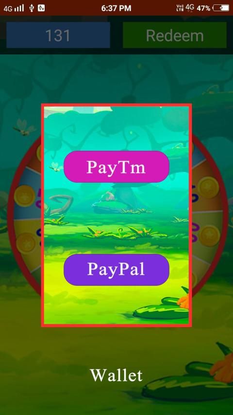 Ketuk roda putar dan dapatkan poin sesuai keberuntungan, setelah ambang total poin selesai, Anda dapat menebusnya dengan PayTm atau dompet kas PayPal.