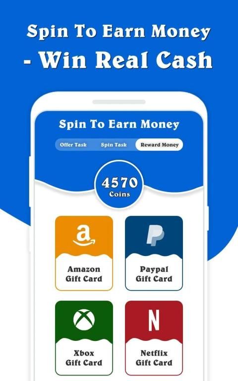 Spin To Earn Money - Win Real Cash app is supported gift card rewards: