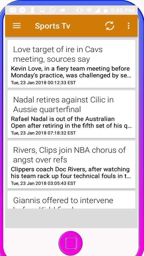 9Apps menyediakan APK download Gratis! 30,000+ Pengguna mendownload Sports Tv versi terbaru di 9Apps secara gratis! Dengan menggunakan ini, kamu jadi tambah pintar. Aplikasi HOT ini di rilis tanggal 2018-02-08. Ayo tunggu apa lagi, download dan install di HP anda sekarang !