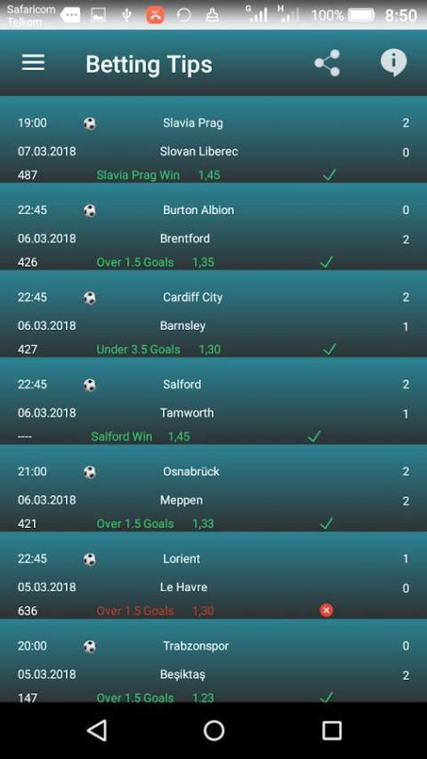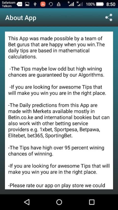 Aplikasi ini memberikan Anda prediksi harian bebas yang dihasilkan dengan pasar taruhan dari