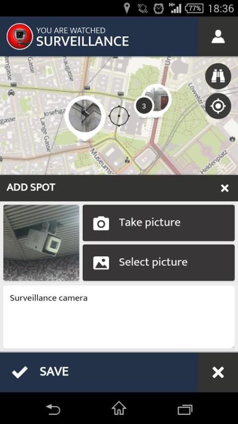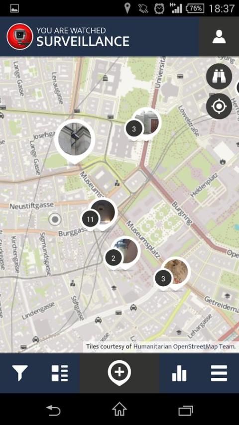 Jumlah kamera pengintai di jalan-jalan kami meledak, kita menyaksikan di mana-mana. Teknologi canggih seperti pengenalan wajah menggantung seperti pedang Damocles 'di atas kepala keluar, memberikan otoritas dan perusahaan listrik besar. Kami tidak ingin dunia ini menjadi mimpi buruk distopian, jadi kami melihat kembali. Cari kamera keamanan CCTV atau peralatan pengawasan lainnya di ruang publik dan meletakkannya di peta - hanya untuk diketahui. Apa yang tidak tersembunyi lagi dapat dilihat oleh banyak orang.