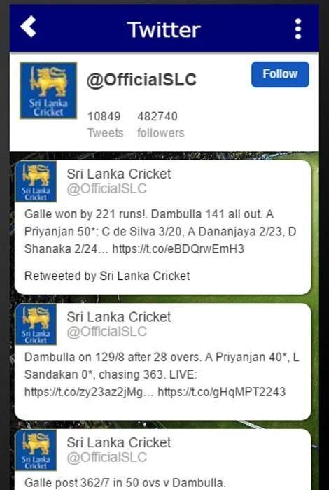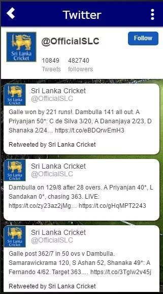 - Integrasi Media resmi Sosial Sri Lanka Cricket