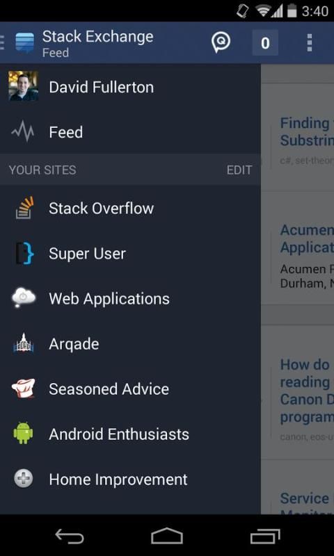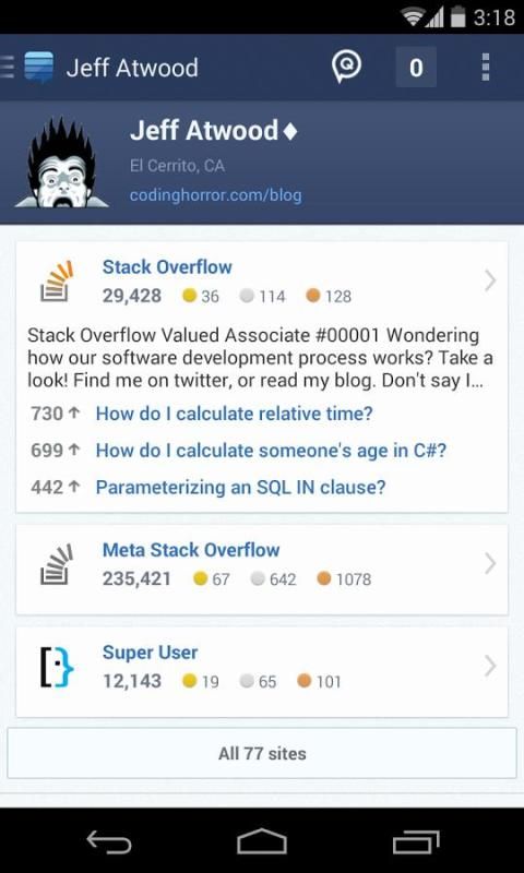 Ini adalah aplikasi resmi untuk semua situs Stack Exchange, termasuk Stack Overflow, Super User, Server kesalahan, Ask Ubuntu dan Arqade.