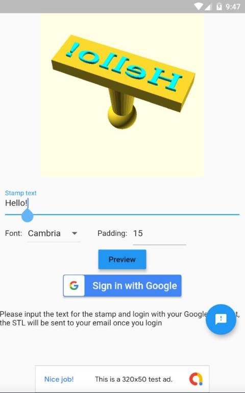 Stamp STL Maker is a simple app that integrated with a cloud service which creates customized stamp STL file for 3D printing, simply input the text you wish to print