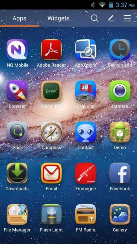Tema bintang ini terdapat ikon yang indah dengan gaya terpadu untuk aplikasi populer, dan menakjubkan wallpaper.