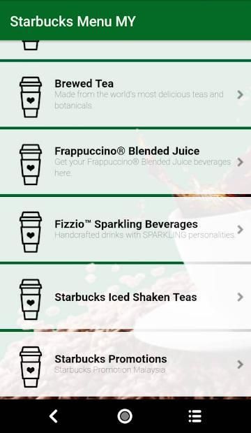 Aplikasi ini adalah menu lengkap untuk memesan semua minuman Starbucks di Malaysia.