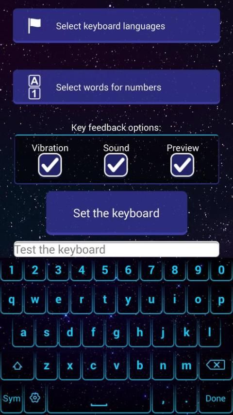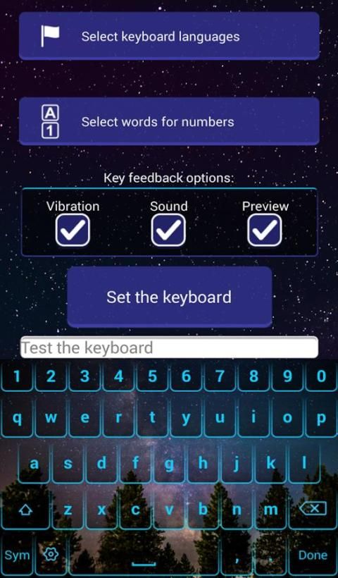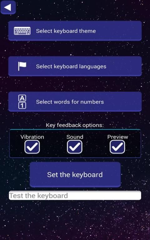 2. Kembali ke aplikasi tersebut, kemudian pilih Set Keyboard ke Default tombol dan pilih Langit Berbintang Keyboard