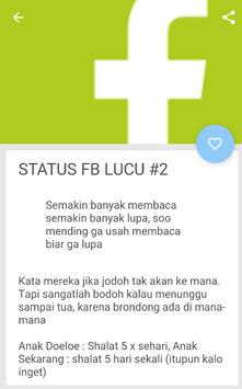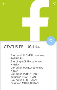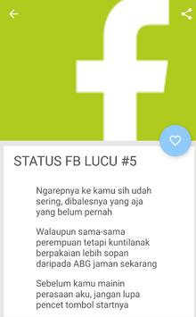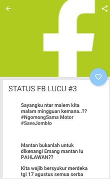 Status dengan kata kata lucu ternyata menurut penilitian mempunyai peluang like lebih banyak dibanding dengan status gak jelas hehehe. Meskipun status pendek namun lucu lebih banyak yang ngelike lho. Nah kalau kamu ingin dapat like yang banyak maka segera copy dan pasang status kata kata lucu di aplikasi ini, karena dengan kata kata lucu dapat menghibur diri sendiri serta orang lain yang membacanya.