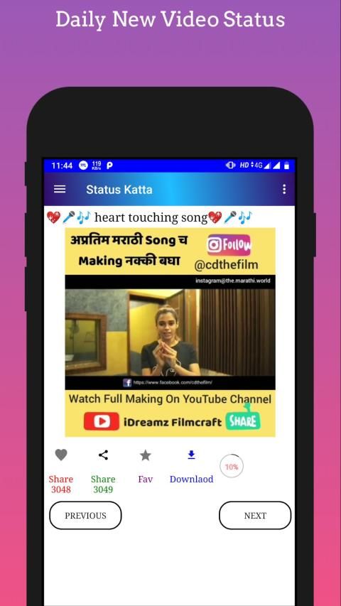 The app contains Marathi status. It also has photo status, text status, lovely & funny videos, MEME.