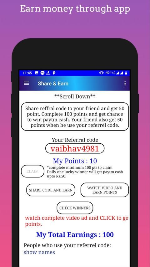 ✔ You can Share the app and Earn Paytm cash. (Just share your referral code.