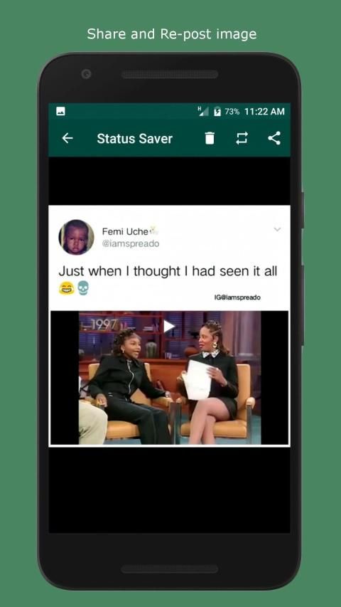 Kemudian Anda dapat menyimpan, membagikan, dan menerbitkan kembali video, gif, atau status gambar apa pun yang telah Anda unduh.