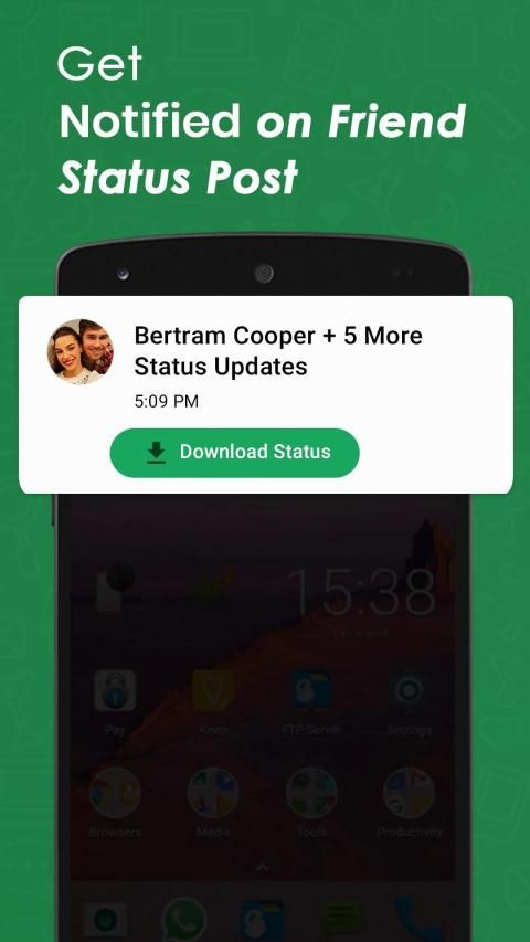 Dengan aplikasi Status Saver berhenti mengambil tangkapan layar status teman Anda. Alih-alih gunakan aplikasi kami dan salin status WhatsApp teman Anda hanya dalam hitungan detik. Itu bisa berupa Gambar atau Kutipan.