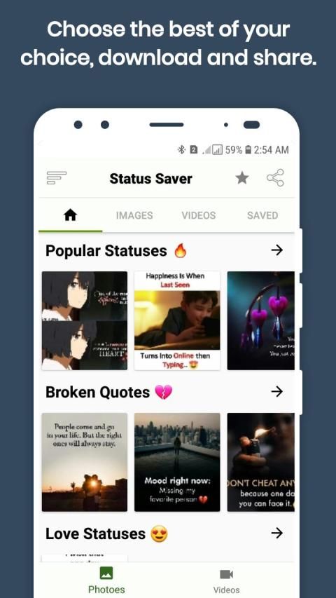 * Status saver lite for you to save statuses instantly.