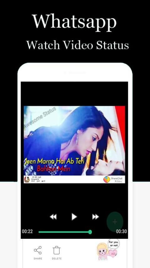 * Pengguna klik Status whatsapp bermain video dengan media player menyediakan oleh Status Saver.