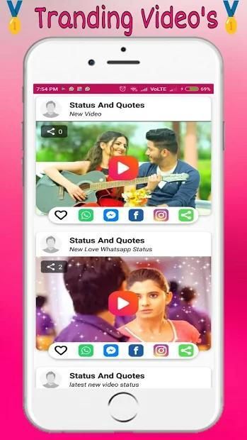 Share Your Status Video To Everyone. Love Video Status, Funny Video Status, 30 Sec Video Available Here. Download Status Video anywhere & anytime with our world fastest server. Status Video App is the best app for video status downloading & sharing.