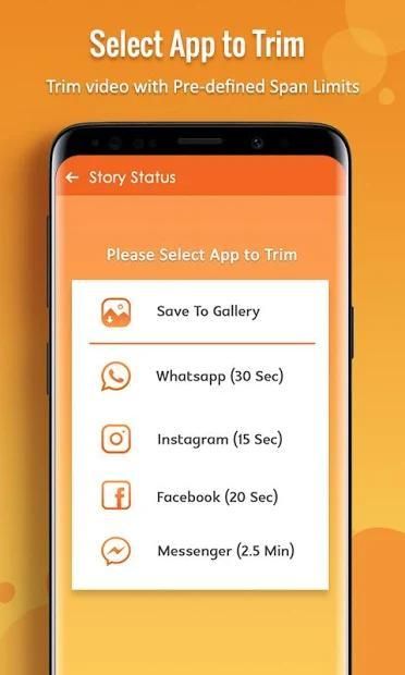Disclaimer: Status Video Editor - Video Cutter is the app to simply edit, share your video status(videos from you phone storage) through Social networking apps. So we are not affiliated or endorsed with any other third party apps.