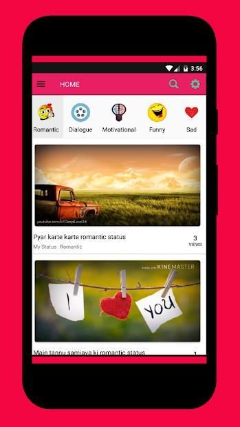 Status Videos app has the large collection of best whatsapp status videos ever categories like Love Status, Miss you Status, Funny Status, Punjabi Video Song Status, Cute Status, Sad Video Status, Motivational video status, Marathi video status and 30 Seconds Lyrical Video for your WhatsApp video status.