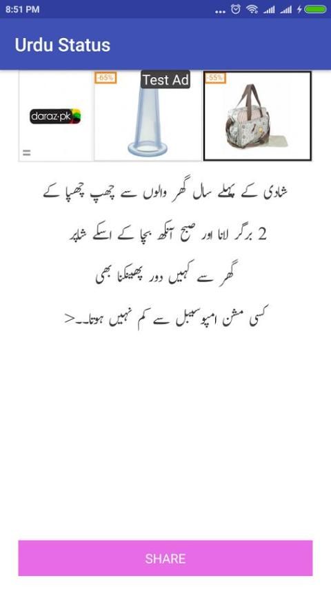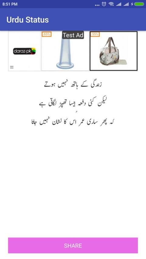 Status Urdu terbaik ini dipilih dari seluruh Internet untuk menggambarkan dalam aplikasi ini. Aplikasi ini terdiri kompilasi terbaik dari status yang tersedia di web