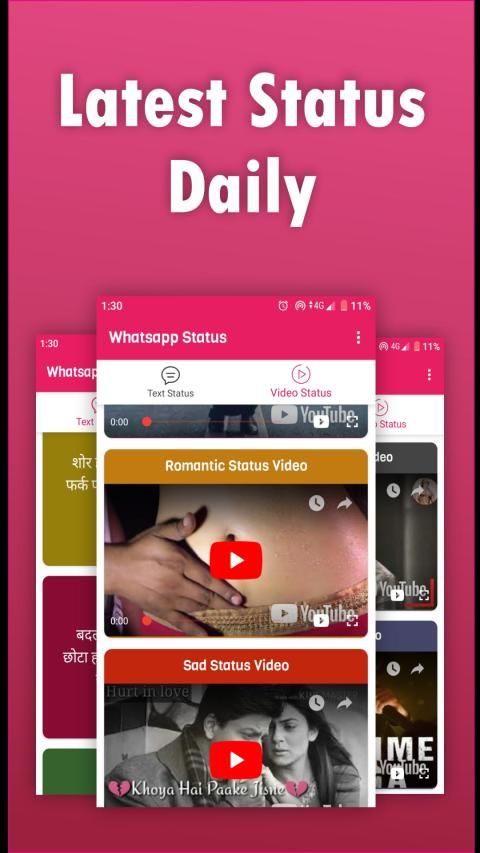 Status Videos Daily with lots of categories and also lot to be added soon in upcoming updates (Download option will be added in the update). Let us know if you have any suggestions or topics to be added in the categories.
