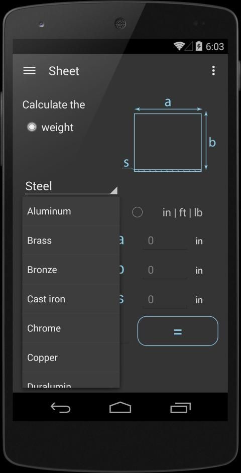 This app will help you to calculate the weight or length of the selected metal in various forms. You can specify the length and get the weight of the metal, and Vice versa - you can specify the weight to get the length.