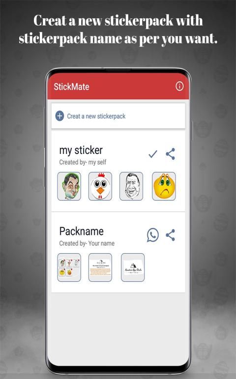 2.Click the "Create a new sticker pack", after then add your stickerpack name and your name.