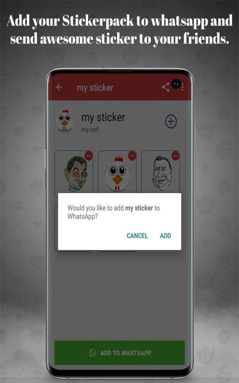 8.After creating minimum 3 sticker you are now able to add that sticker pack to your whatsapp application, Click on "Add to Whatsapp" and that's cool, enjoy that sticker.