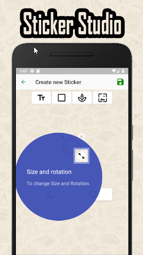 Stiker Studio (pembuat stiker) Koleksi besar stiker (WhatsApp Wastickerps) telah dibuat sehingga pengguna aplikasi dapat membuat dan merancang stiker mereka sendiri agar sesuai untuk semua kesempatan.