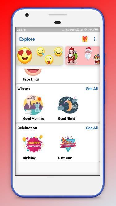 + Unlimited Memes : Memes stickers/ Emojis are available for each category like love, Sad, Happy, Angry, Like, Happy Holidays, Merry Christmas, Happy New Year 2019 etc.