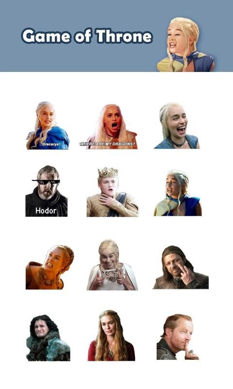serial TV emoji: Teman, Game of Thrones, Teori Bigbang, Manusia Terakhir di Bumi;