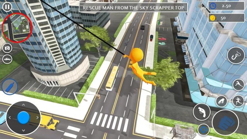 Use rope to swing in air and caught all stickman gangster in superhero games.