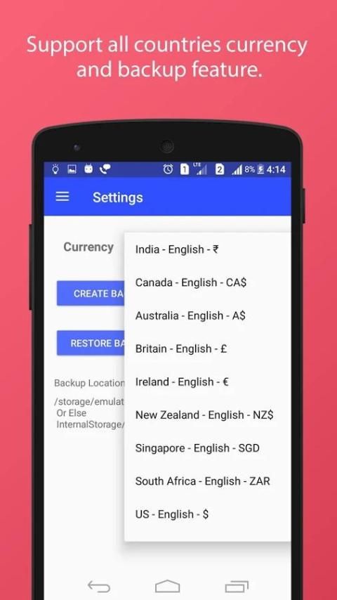 -> Anda dapat mengubah format mata uang aplikasi yang diikuti oleh negara Anda.