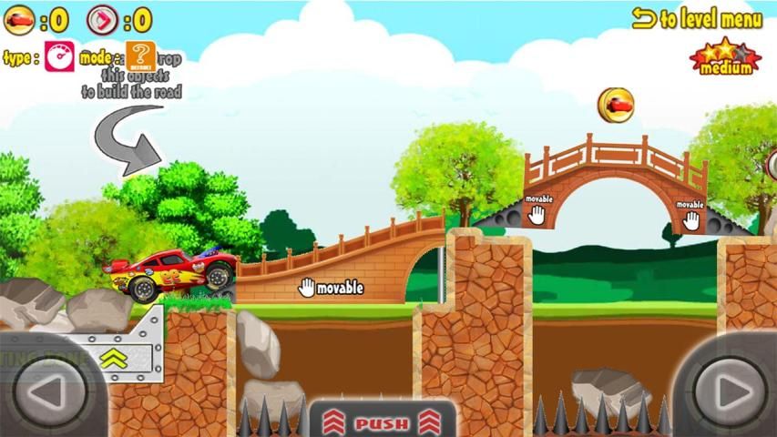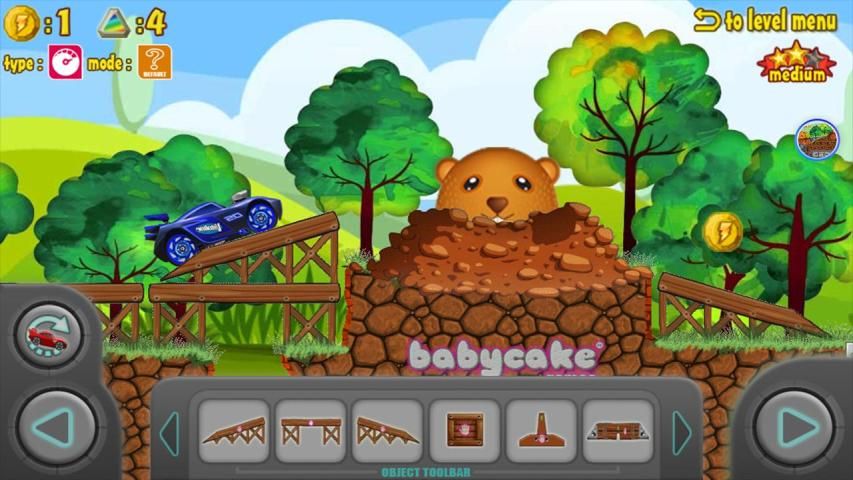 Drag dan drop potongan atau untuk membangun jembatan dan disatukan trek untuk membantu menyeberangi semua rintangan.