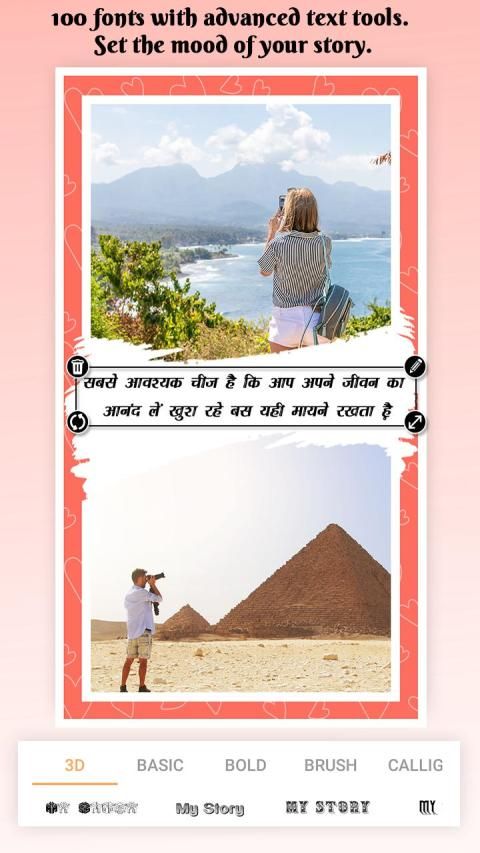- Setiap template siap digunakan, cukup pilih foto indah Anda dan teks yang menggambarkan perasaan Anda. Dan untuk menambah daya ekstra pada gambar Anda, ada banyak efek filter yang digunakan.