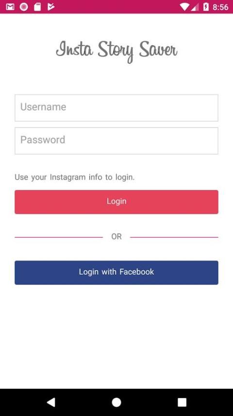 Anda akan diminta untuk menempatkan login Instagram Anda untuk menggunakan aplikasi ini, atau Anda bisa menggunakan membangun di Login dengan fitur Facebook. Kedua form login dilindungi, dan dienkripsi dari Instagram API login.