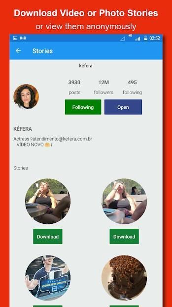 - Download story videos and images in just one tap