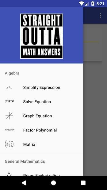 Straight Outta Math Answers provides you with a wide variety of tools to help you solve even the most difficult of math problems. From the simplest of math equations all the way to trigonometry and number statistics, the Straight Outta Math Answers app will give you the correct answer. This app is a useful and productive tool for anyone who needs a quick and easy way to find the solution to a math problem.